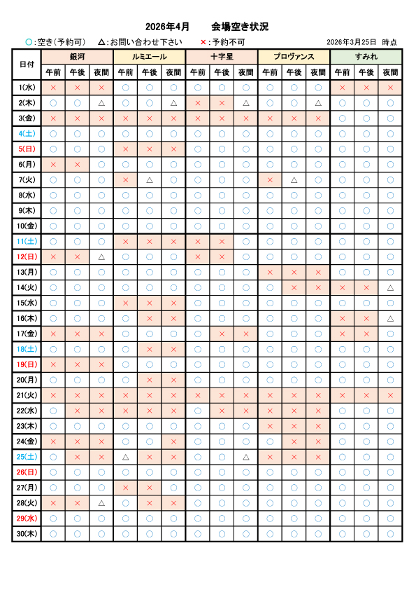 ご利用日の1ヶ月前までのご予約で会場費・備品費が30%割引