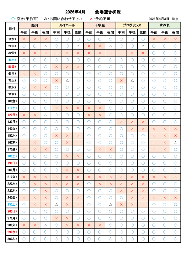 ご利用日の1ヶ月前までのご予約で会場費・備品費が30%割引