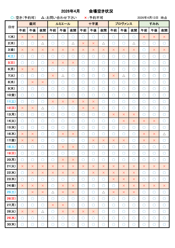 ご利用日の1ヶ月前までのご予約で会場費・備品費が30%割引